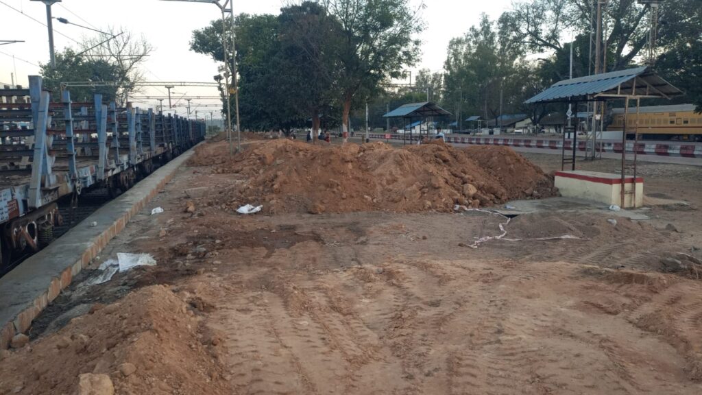 रेलवे प्लेटफॉर्म में मिट्टी फीलिंग के कार्य पर घोर लापरवाही देखने को मिल रही है, जिसमें ठेकेदार द्वारा मैनुअल तरीके से कार्य ना करते हुए मशीनरी का उपयोग किया जा रहा है, अति संवेदनशील एवं प्रवेश निषेध की जगह पर ट्रैक्टर वाहन एवं जेसीबी मशीन का विद्युत लाइन के नीचे उपयोग मिट्टी फीलिंग के लिए किया जाना निश्चित तौर पर किसी बड़ी दुर्घटना को आमंत्रित करना है। 24 घंटे निरंतर दौड़ती व्यस्ततम रेल पटरी पर बिना परमिशन गाड़ियों की आवाजाही ठेकेदार की मनमानी दर्शाती है।