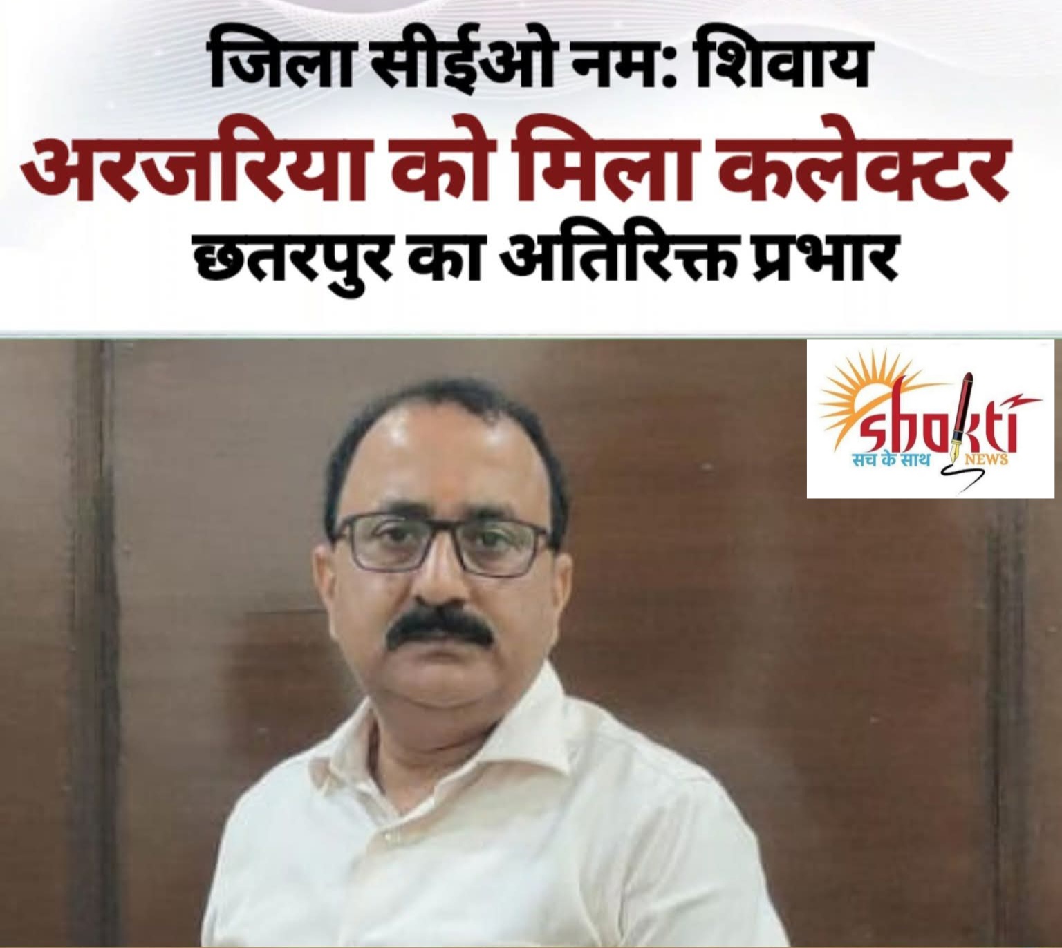 @छतरपुर- आशुतोष द्विवेदी। जिला पंचायत के मुख्य कार्यपालन अधिकारी (सीईओ) नम: शिवाय अरजरिया को अब कलेक्टर छतरपुर का अतिरिक्त प्रभार सौंपा गया है। सागर संभाग के कमिश्नर अनिल सुचारी ने इस संबंध में आदेश जारी किया है, कलेक्टर पार्थ जैसवाल कुछ दिनों के लिए प्रशासनिक प्रशिक्षण पर जिले से बाहर है।