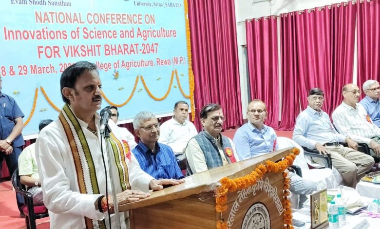 @रीवा। उप मुख्यमंत्री श्री राजेन्द्र शुक्ल ने कृषि महाविद्यालय रीवा में विकसित भारत 2047 के लिए विज्ञान और कृषि में नवाचार विषय पर आयोजित दो दिवसीय राष्ट्रीय सम्मेलन शुभारंभ किया। इस अवसर पर उप मुख्यमंत्री ने कहा कि खेती हमारी अर्थव्यवस्था का आधार है। हम वर्तमान में विपुल अन्न और फल सब्जियों का उत्पादन कर रहे हैं। उत्पादन बढ़ाने के लिए हमने खाद और कीटनाशकों का अत्यधिक उपयोग किया है, जिसके कारण धरती माता बीमार हो गई हैं। धरती माता को स्वस्थ रखना और भावी पीढ़ी को स्वस्थ जीवन देने के लिए प्राकृतिक खेती इस समय की सबसे बड़ी आवश्यकता हैं। गोपालन पर आधारित प्राकृतिक खेती से ही हमें अच्छे स्वास्थ्य की नेमत मिलेगी। हर किसान अपनी कुल जमीन के दस प्रतिशत भाग पर प्राकृतिक विधि से अनाज फल और सब्जी का उत्पादन करें जिससे कम से कम उसके परिवार को रसायन रहित पौष्टिक आहार मिल सके। सेमिनार का आयोजन कृषि महाविद्यालय, जवाहरलाल नेहरू कृषि विश्वविद्यालय जबलपुर, एकेएस यूनिवर्सिटी तथा श्याम दुलारे तिवारी शिक्षा एवं शोध संस्थान द्वारा किया जा रहा है।