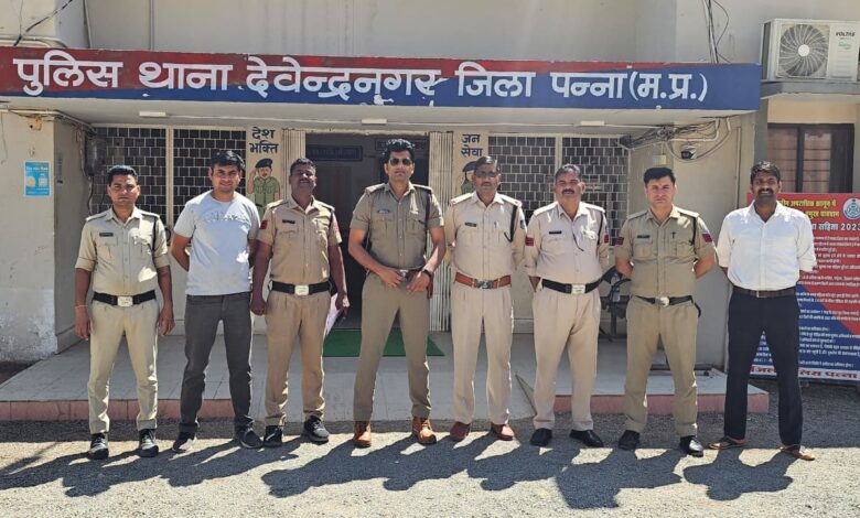 पन्ना एस पी श्रीमती निवेदिता नायडू के निर्देशन एवं मार्गदर्शन में थाना प्रभारी देवेन्द्रनगर उपनिरीक्षक संतोष सिंह यादव के नेतृत्व में विशेष टीम गठित की गई। विवेचना के दौरान घटनास्थल का मौका देखा। संदिग्ध व्यक्तियों पर निगरानी रखते हुए मुखबिर तंत्र को सक्रिय किया गया। मुखबिर से सूचना प्राप्त हुई कि एक संदिग्ध व्यक्ति चोरी गई मोटरसाइकिल के साथ मुटवा तिराहा के पास देखा गया है।