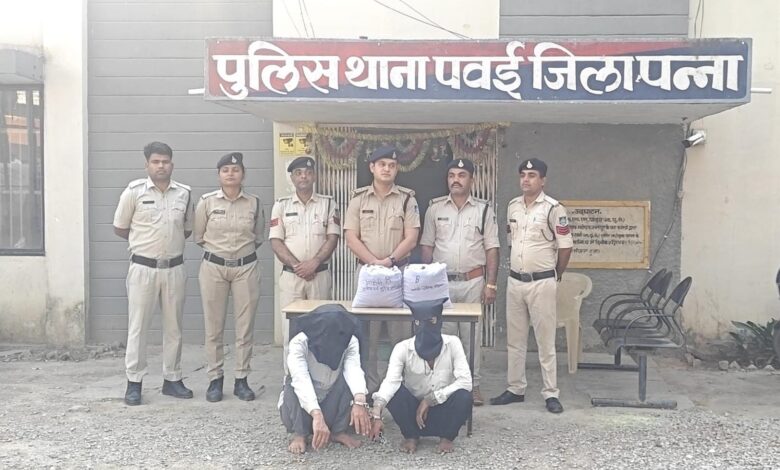 पुलिस अधीक्षक पन्ना द्वारा किसी तरह के अवैध गतिविधियों पर लगाम लगाने के निर्देशन दिये। मादक पदार्थो क जिले के समस्त थाना प्रभारियों को निर्देशित किया गया है । पुलिस अधीक्षक पन्ना के निर्देशानुसार अतिरिक्त पुलिस अधीक्षक पन्ना सुश्री वंदना चौहान अधिकारी पुलिस के मार्गदर्शन में जिले के समस्त थाना प्रभारी अलर्ट है। इसी तारतम्य में थाना प्रभारी पवई निरीक्षक सुशील कुमार को मुखबिर तंत्र ने बताया दो व्यक्ति अवैध मादक पदार्थ (गाँजा) लेकर पवई बायपास तिराहा स्थित माही ढाबा के पास बिक्री हेतु बैठे हैं।