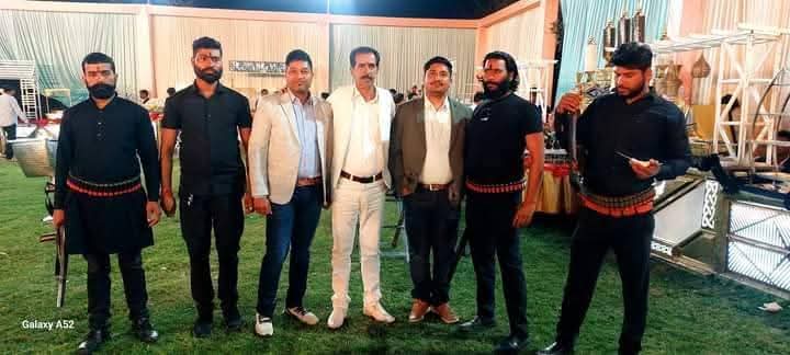 पंचायत सचिव राकेश शुक्ला सफ़ेद कपड़ो में और उनके आजू बाजू में तैनात सुरक्षा कर्मी इसी से अंदाजा लगाया जा सकता हैं इनके पावर का जिसको शक्ति न्यूज़ नें खबरों से डिपोज्द कर दिया