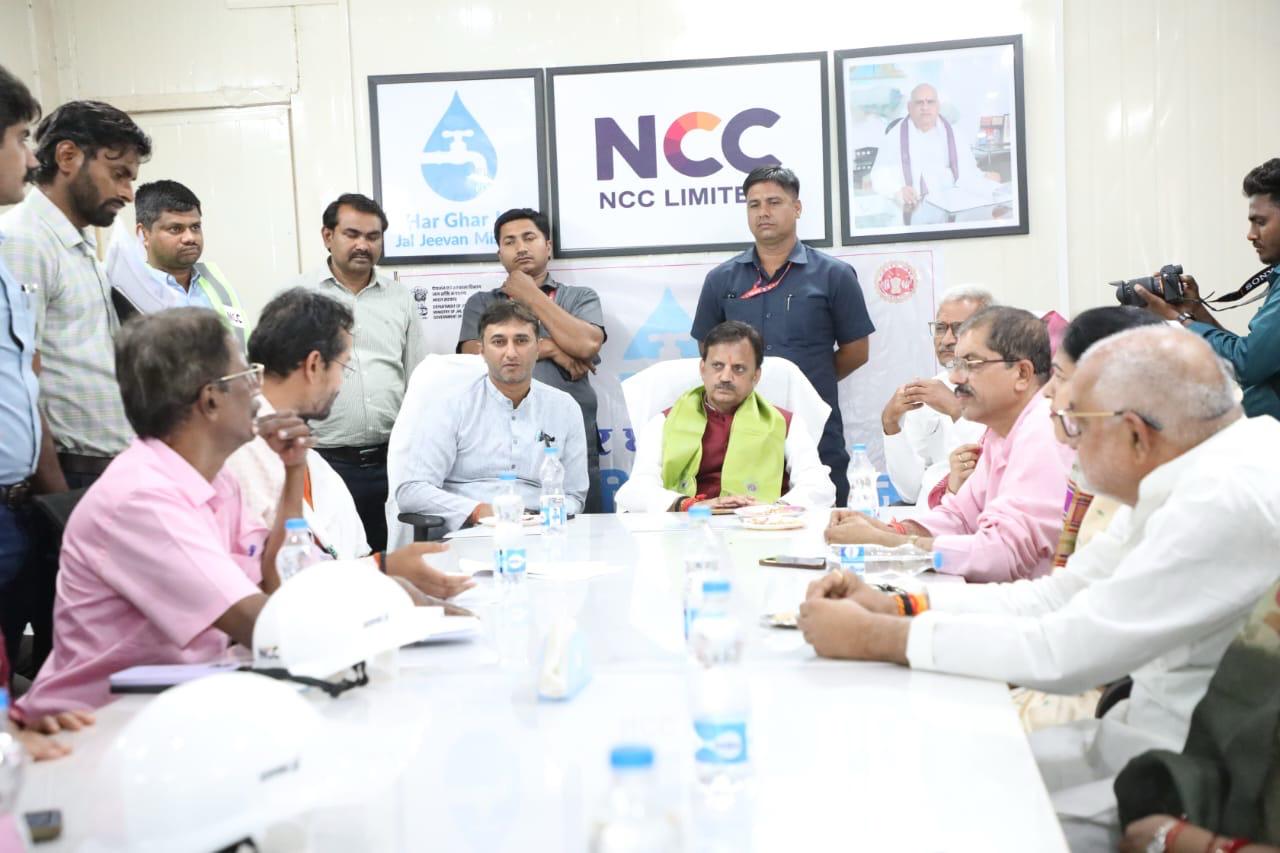 इस अवसर पर सांसद श्री जनार्दन मिश्र ने विभागीय अधिकारियों को निर्देशित किया कि इस महत्वाकांक्षी योजना के कार्यों में देरी बर्दाश्त नहीं की जाएगी। उन्होंने कहा कि निर्माण एजेंसी तेज गति से कार्य करे और विभागीय अधिकारी सतत मॉनिटरिंग करें। बैठक में विधायक सिरमौर श्री दिव्यराज सिंह ने आवश्यक मार्गदर्शन दिया। बैठक में महाप्रबंधक जल निगम चित्रांशु ने बताया कि जून माह तक 33 ग्रामों में, सितंबर माह तक 229 गांवों में तथा दिसम्बर माह तक 419 गांवों में घर घर में स्वच्छ जल पहुंचा दिया जायेगा। निर्माण एजेंसी एनसीसी लिमिटेड द्वारा आयोजित बैठक में मुख्य अतिथि ने जल जीवन मिशन के कार्यों के लिए भूमि दानदाताओं का सम्मान किया।
