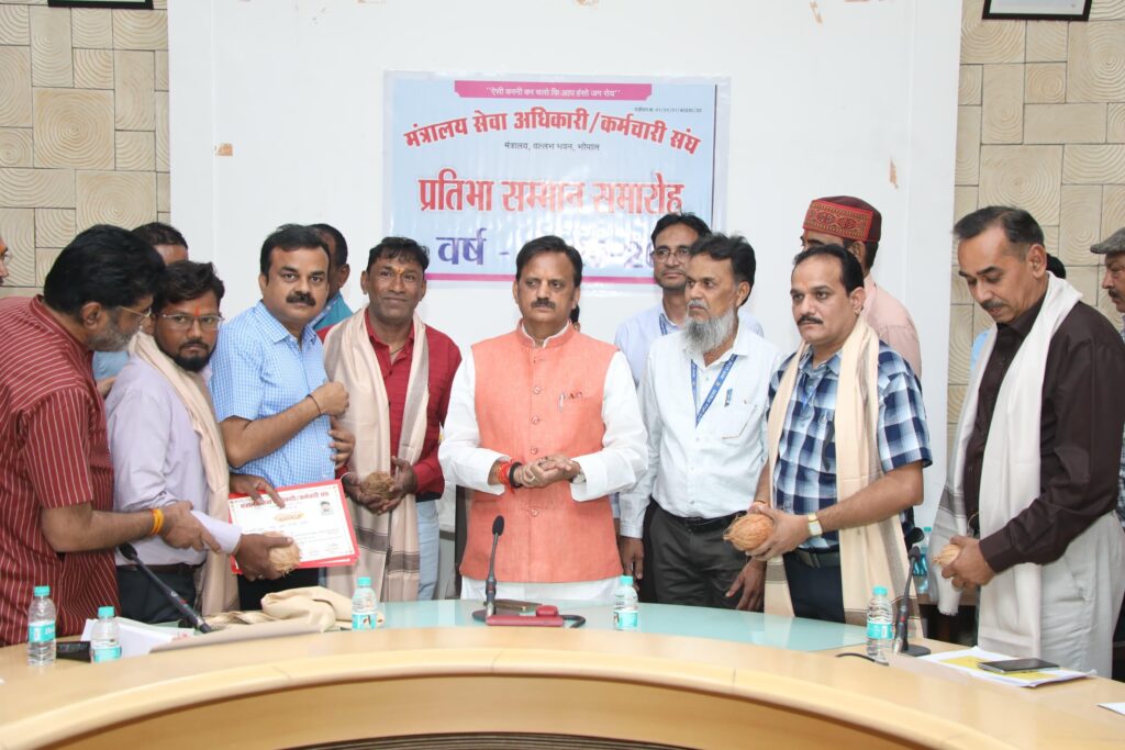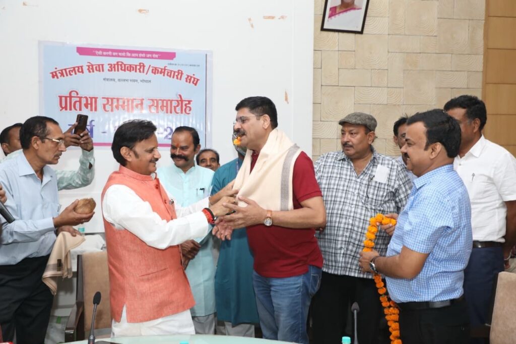 @भोपाल। उप मुख्यमंत्री श्री राजेन्द्र शुक्ल वल्लभ भवन में मंत्रालय सेवा अधिकारी-कर्मचारी संघ द्वारा आयोजित प्रतिभा सम्मान समारोह में शामिल हुए। उन्होंने कहा कि कर्मचारी संगठन की यह सराहनीय पहल है कि वे केवल अपनी मांगों के लिए संघर्ष ही नहीं करते, बल्कि उत्कृष्ट और उल्लेखनीय कार्य करने वाले लोगों को सम्मानित भी करते हैं। उन्होंने कहा कि समाज की नजर बहुत सूक्ष्म होती है और अच्छा कार्य करने वालों को पहचान अवश्य मिलती है। ऐसे कार्यक्रम इस विश्वास को मजबूत करते हैं कि मेहनत और सकारात्मक कार्य को देखा और सराहा जाता है।