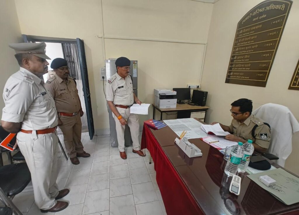 @छतरपुर- आशुतोष द्विवेदी। आज पुलिस अधीक्षक अगम जैन द्वारा थाना महाराजपुर का वार्षिक निरीक्षण किया गया। निरीक्षण के दौरान लंबित अपराध, चालान, मर्ग, गुम इंसान प्रकरणों सहित अन्य लंबित मामलों एवं शिकायतों की समीक्षा की गई। पुलिस अधीक्षक द्वारा सभी प्रकरणों के शीघ्र निराकरण हेतु प्रकरणवार आवश्यक दिशा-निर्देश दिए गए।